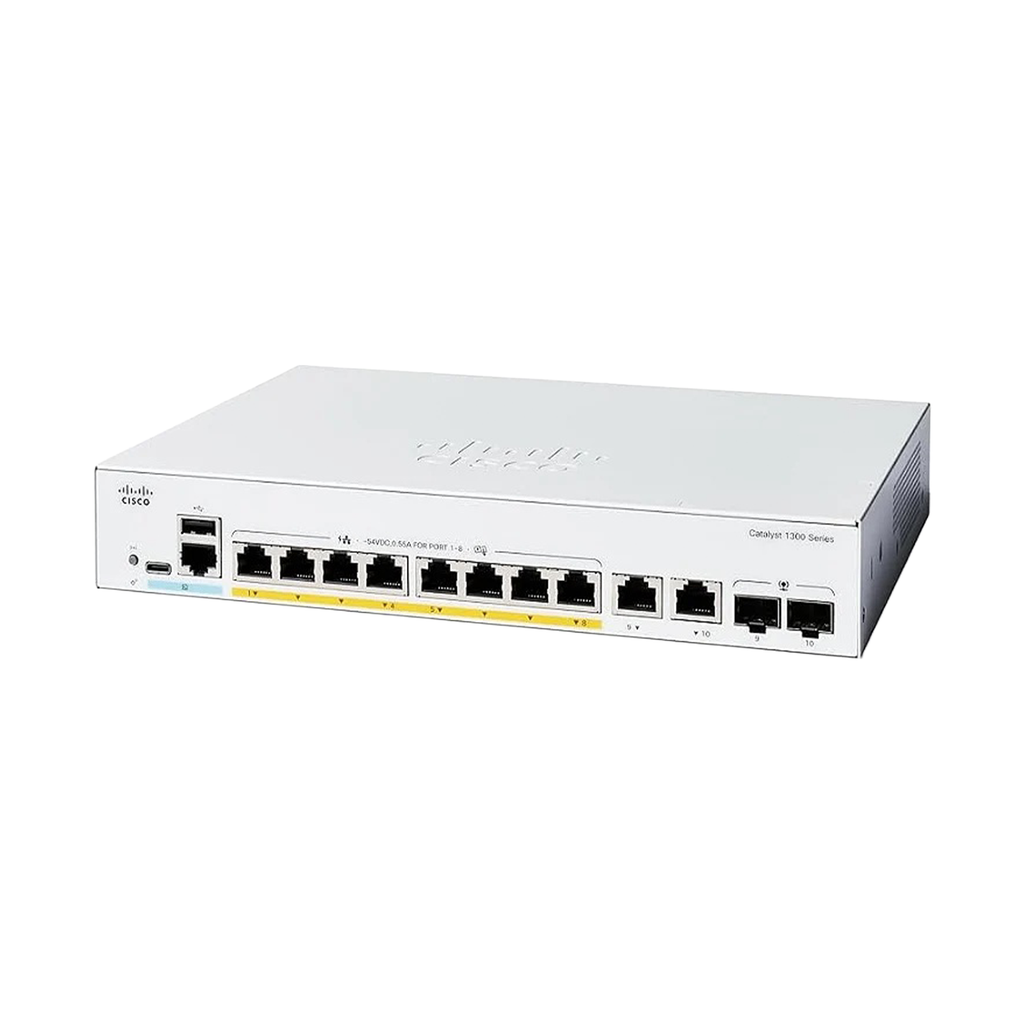 Partnumber: C1300-8FP-2GSwitch Cisco Catalyst 1300 com 8 portas Gigabit Full PoE + 2 portas 1G COMBO. Alimentação completa para APs, câmeras e dispositivos IoT.