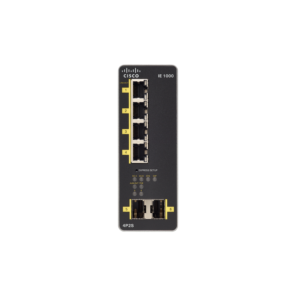 Partnumber: IE-1000-4P2S-LM Switch Cisco IE-1000 com 4 portas Fast Ethernet PoE + 2 SFP. Ideal para alimentar sensores e câmeras em ambientes industriais.